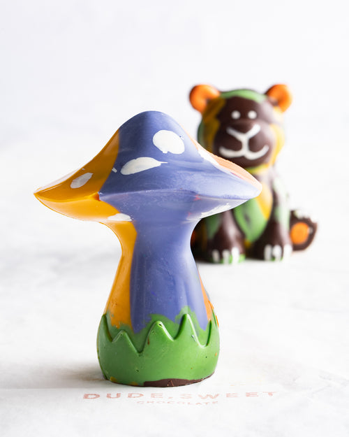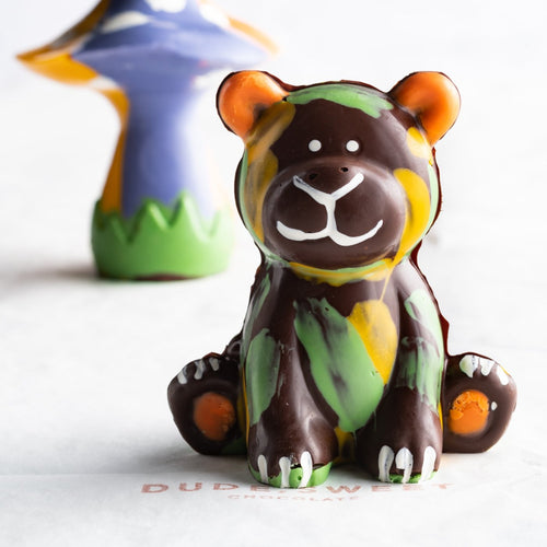 First of all the chocolate appears exactly as the picture on the website, shiny withe the iridescence on top. Then, when you open it you immediately get the smell of raspberries. The you cut it open, and you see dark chocolate, then there is a fudge portion, there are dark cherries and pistachio nuts all dotted throughout the heart. Also there was a really soft chocolate layer the seemed to melt on your fingers as you touch it. But the best part was the flavors, it's the sweet cherries, the crunchy pistachios...somewhere I tasted raspberries...it was literally the best chocolate I ever ate. Between my husband and I, we ate a pound of this chocolate when we opened it Valentine's night, it's incredible. I saw this shop profiled on a TV show and I like to support small businesses, this is one of the best. Here is a picture of when we opened our heart. My husband is not a chocolate lover, but he ate more than I did and said this was the best chocolate he's ever had.