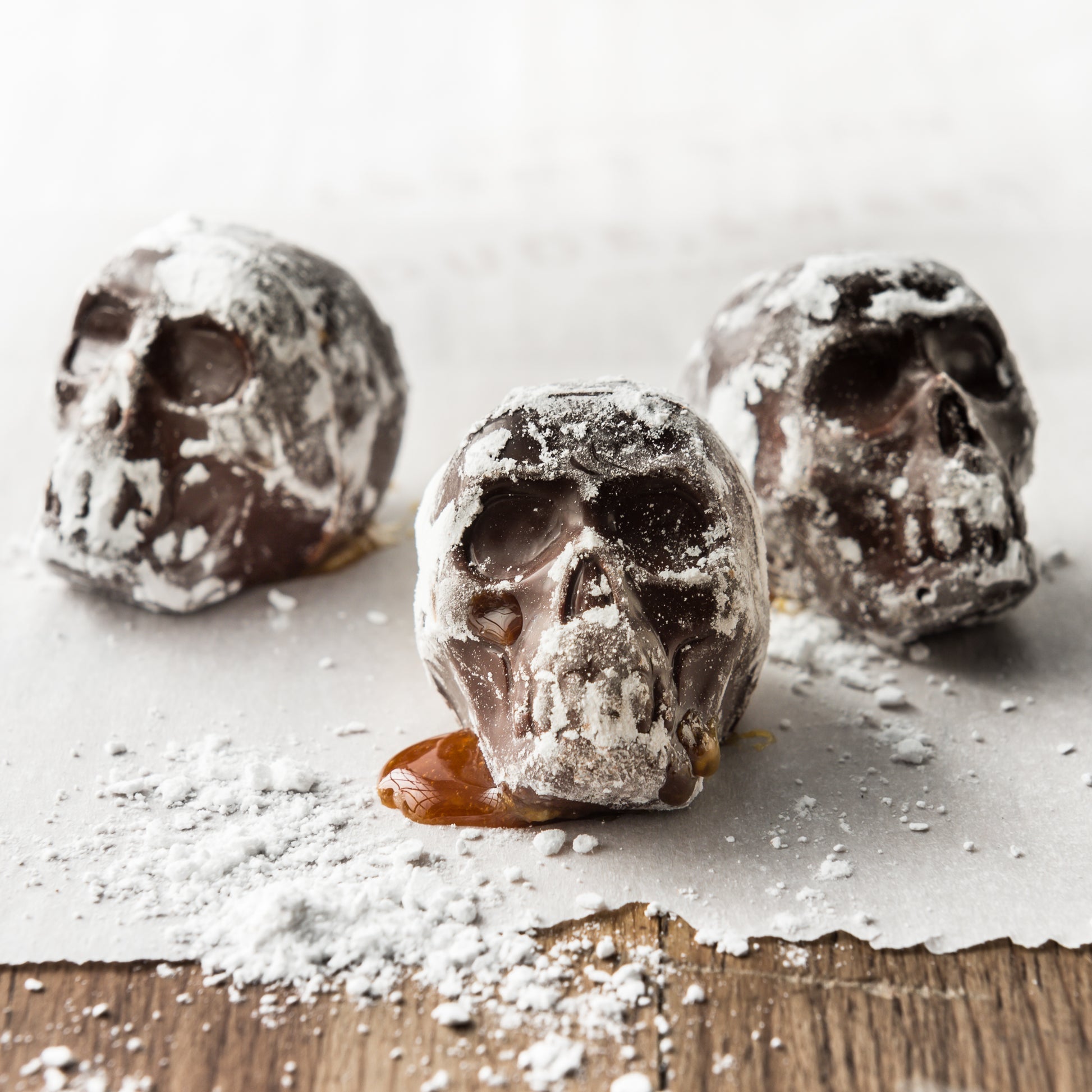 7 pieces of our signature dark chocolate skulls filled with dulche de leche and sea salt